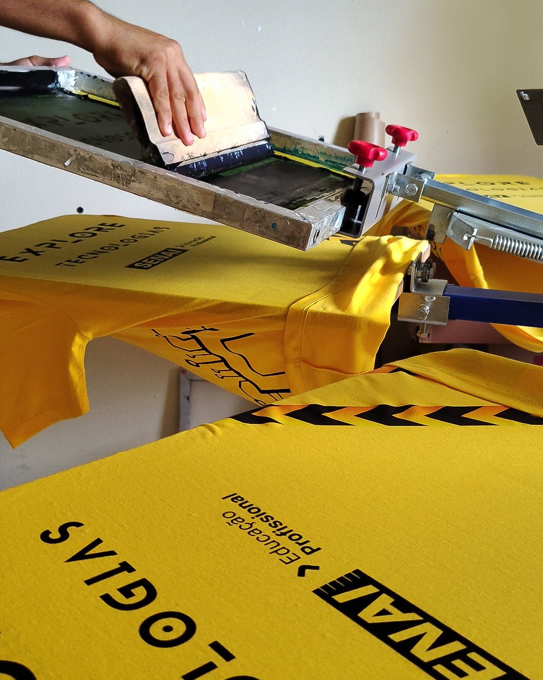 Técnica tradicional que oferece alta durabilidade e cores vibrantes, ideal para grandes tiragens.